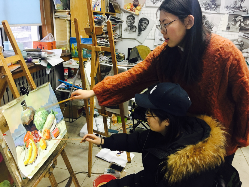 第一站,前往杭州西湖山望画室。杭州西湖山望画室是艺术课堂进社区的第一站,也是社会实践小分队第一次走向省外。在实践活动中,我院小分队成员主要向即将参加鲁迅美术学院2018年设计系本科考试的学生教授设计学类知识。分队成员将这半年来在学院学到的知识以做范画、图形透叠、色彩搭配重组等方式分享给即将参考的同学,帮助他们解决准备考试中遇到的难题,并向即将参加考试的学生分享了他们的考试经验、考前准备事项、考试注意事项等,这在在一定程度上缓解了同学们考前焦虑和心理压力。