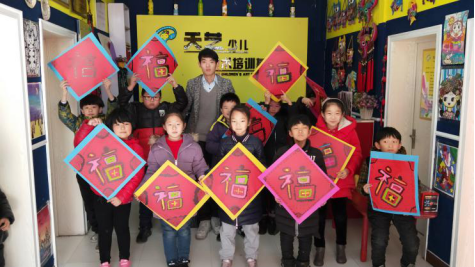 第四站,前往儿童活动中心。曲阜青少年书画基地、济宁微山大童画美术馆、聊城莘县有为儿童绘本美术中心是艺术课堂进社区社会实践团队多次前往的实践基地。艺术课堂进社区曲阜小分队的成员为“小学员”们开展了年兽涂鸦、太空泥玩偶设计、福字绘画装饰等课程。济宁小分队的成员为“小学员”们讲授了手绘、线描等课程。聊城小分队的成员为“小学员”们讲授了手工制作、素描绘画技巧等课程。这些丰富多彩的课程不仅激发了“小学员”们的艺术兴趣,还提升了他们的动手能力,增长了对艺术知识的了解。