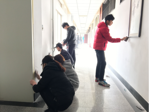 活动伊始,志愿者们积极主动打扫走廊卫生,并在教室内外开展清扫卫生死角、清扫墙壁和展台、擦拭门窗、消防栓等一系列的卫生细节清理,他们希望自己的绵薄之力能给校园增添光彩,为我们学习雷锋精神做出了榜样。随后,在学生会主席、学生党员江婉的带领下,志愿者们对这次活动进行了总结。