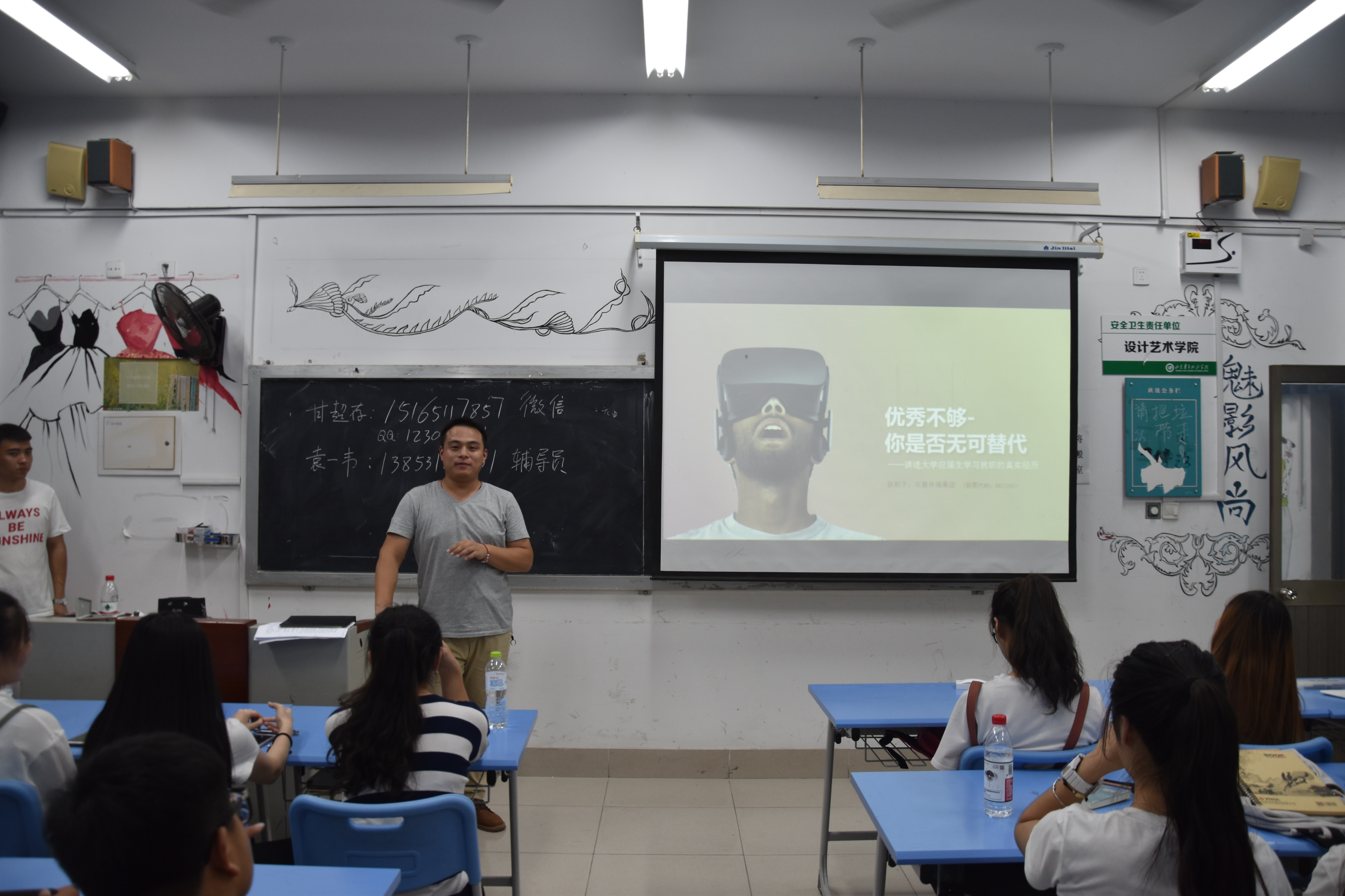为了做好新生入学教育,加强大一新生与优秀毕业生之间的交流与沟通,2017年9月9日晚上7:00,设计艺术学院于艺术楼501、502开展优秀毕业生经验交流会活动,设计艺术学院特意邀请毛士才、陈继龙两位毕业生到校,与2017级设计艺术专业的学生进行了交流。