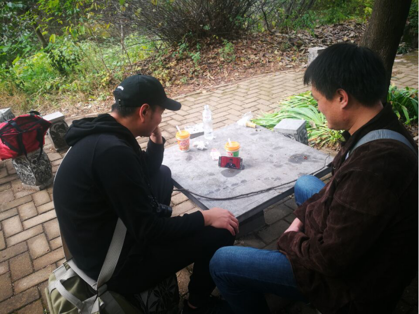 教工党支部第三党小组的老师在带学生外出之间用手机观看十九大会议实况