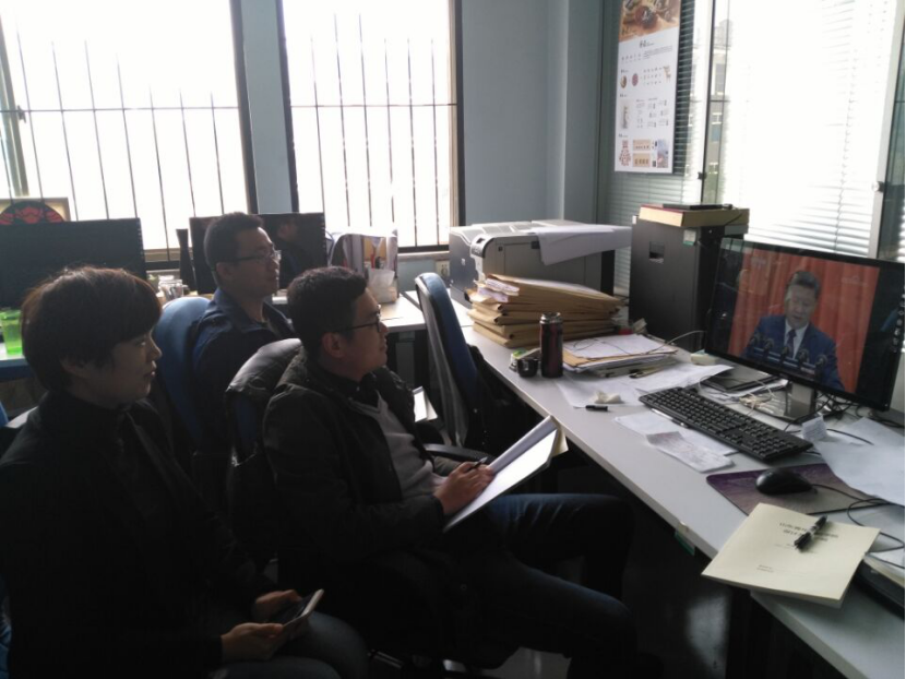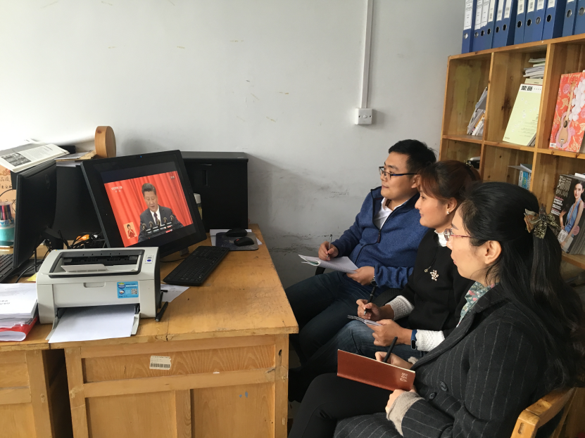 教工党支部第二党小组的老师在工作室观看十九大会议实况