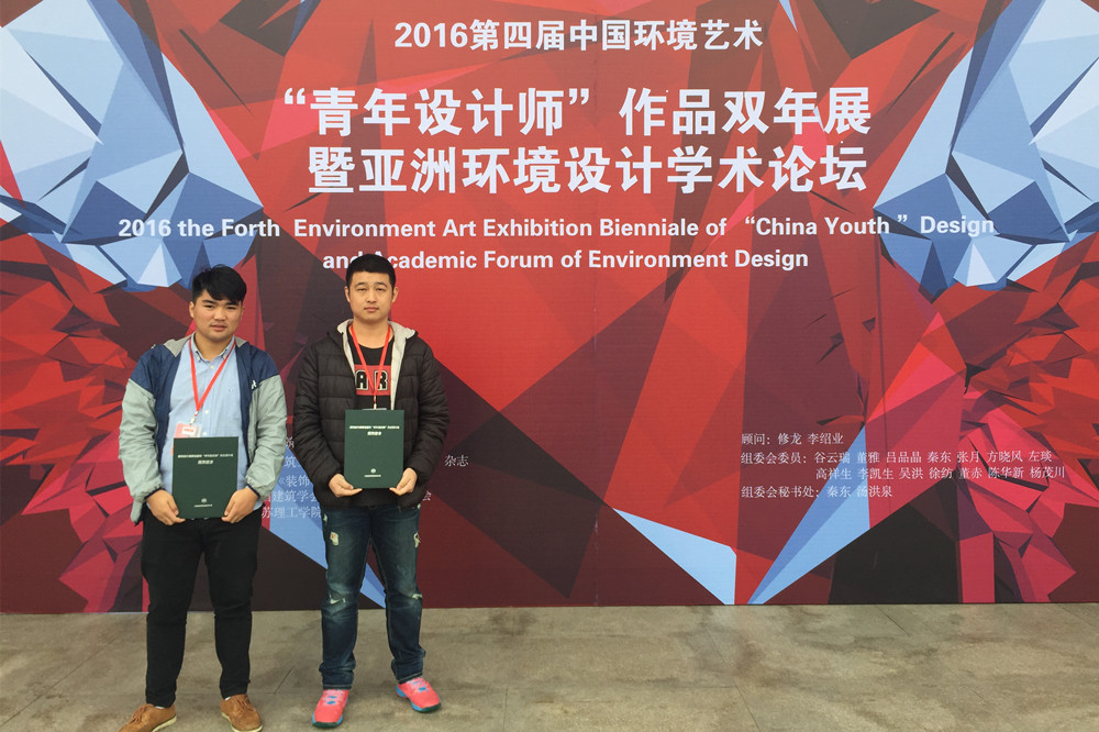 近日,设计艺术学院环境设计专业师生在环境设计专业马琛老师的带领下到江苏常州参加第四届中国环境艺术“青年设计师”作品双年展暨亚洲环境设计学术论坛,并参加了颁奖典礼。我院学生获得室内公共空间设计奖铜奖一项,获室内住宅空间设计奖优秀奖两项;我院教师获得室内公共空间设计奖优秀奖两项,最佳指导教师奖一项。