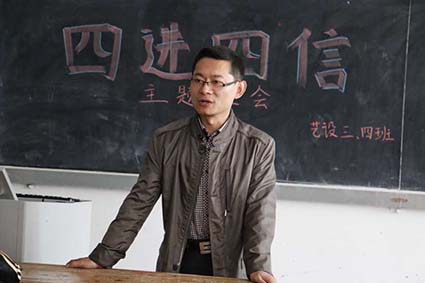 本次活动由各团支部自行拟定策划方案并在辅导员与班主任的共同指导下开展。各支部成员认真准备,积极发动,通过PPT展示、演讲、问题抢答、小组讨论等多种形式引领和帮助同学们了解、掌握和理解讲话精神。设计艺术学院院长张静、党总支书记王金库、副院长王焕贞、党总支副书记张博分别参加了不同支部的活动并向同学们提出了殷切的希望。张静指出,“四信”强调信任、信念,同学们在点滴生活中应当严格要求自己,承担起当代大学生的责任;王金库指出,“四进”是手段,“四信”是核心,同学们要真正认真贯彻落实社会主义核心价值观,成为国家和社会需要的人才。王焕贞结合同学们的日常生活从德育方面对“四进四信”的精神内涵进行了深刻的阐述;张博对同学们为活动进行的认真准备提出了表扬。他表示,通过此次活动,看到了一个个积极向上、团结进取的集体,同学们要认同党的决策,支持党的决议,拥护党的思想,坚定走中国特色社会主义道路实现“中国梦”的信念。