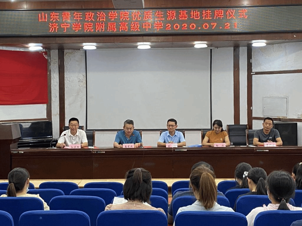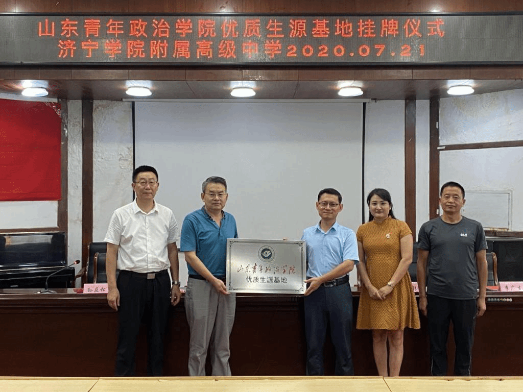 7月21日,山东青年政治学院“优质生源基地”签约挂牌仪式在济宁学院附属高级中学隆重举行。山东青年政治学院设计艺术学院院长张博、副院长徐彩、教师于程杨与济宁学院附属高级中学校长孟宪滨、教务处主任孙庆松、教育处主任李广生及师生代表参加仪式,仪式由孙庆松主持。