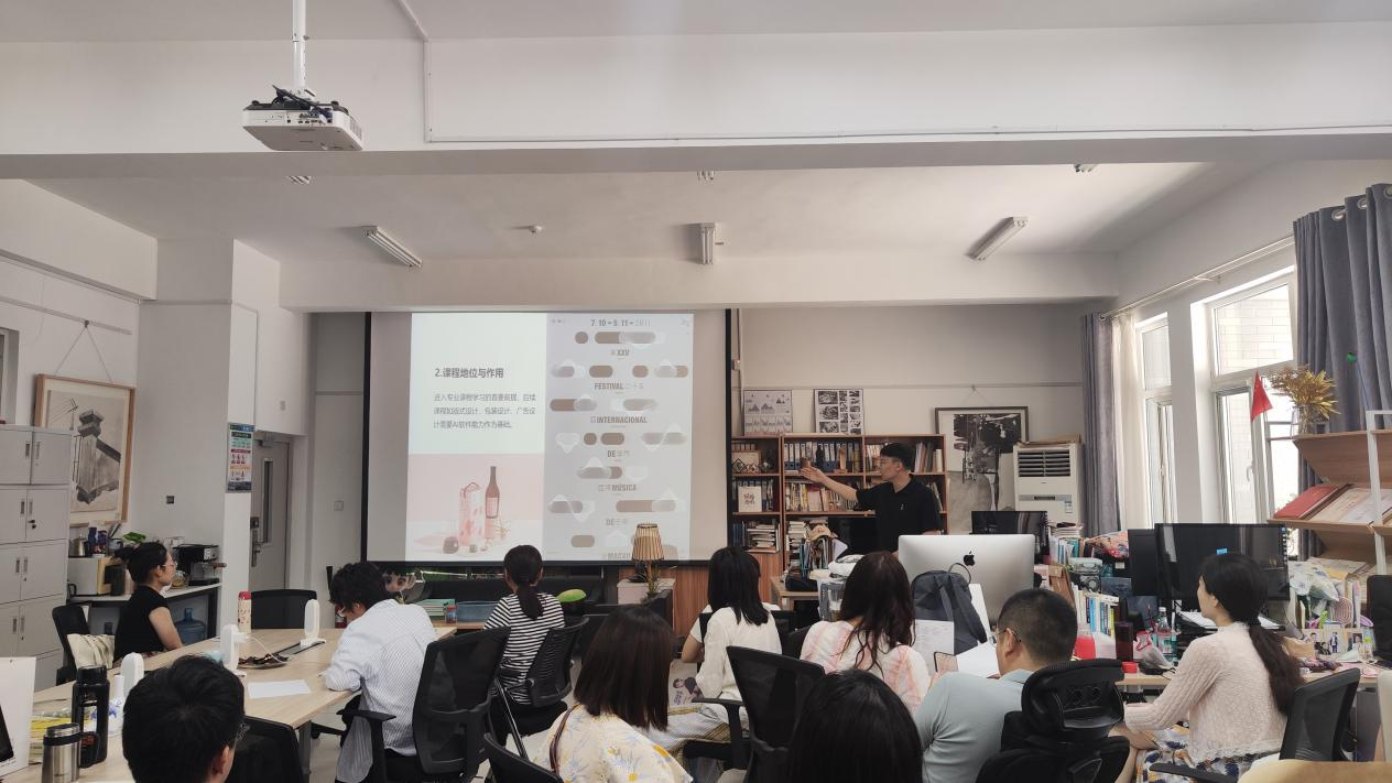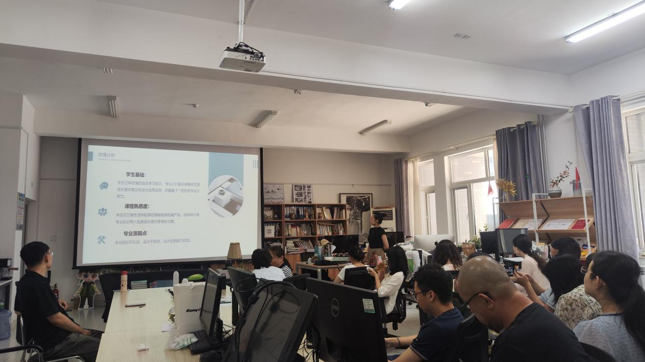在专业教师的说课及互评工作环节,教研室教师按照课程的开展顺序依次展开说课及讨论,尤其对新进教师曹广和栾梦的《计算机辅助设计二(AI)》和《包装设计》两门课程的说课,给出了宝贵的意见和可行性建议,在助力新教师快速成长的同时也充分体现了本专业以老带新的传帮带优良传统。