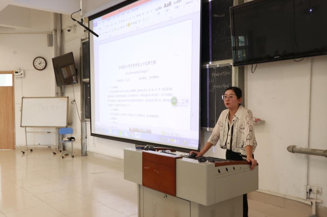 环境设计教研室主任马琛介绍了专业概况,并通过培养目标、课程设置、选课注意事项等方面对“2023版环境设计专升本专业人才培养方案”进行详细解读。