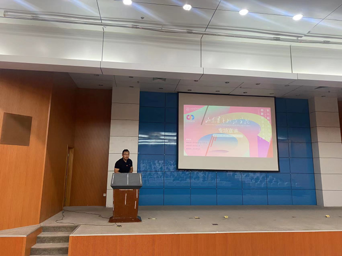 为汇聚优势资源,挖掘设计创意,帮助学生全面了解比赛,调动学生参与大学生创新创意大赛的积极性,9月21日,设计艺术学院在学校图书馆西报告厅召开第六届大学生创新创意设计大赛专题宣讲会。本次宣讲会特邀大学生创新创意大赛副秘书长、山东大学唐绍钧副教授为学院学生做赛事的专题讲解。设计艺术学院副院长沈路出席此次活动。