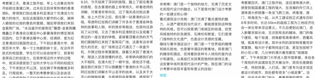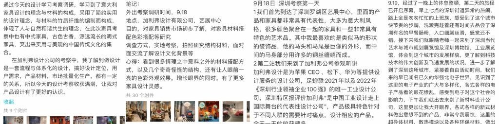 考察结束后,同学们在课程建设平台分享了调研考察各阶段的心得感悟,纷纷表示这是一次对专业学习、目标规划、就业创业等方面的一次有意义的调研活动,并为今后开展设计与毕业设计拓展了更多的设计思路和提供了更创新的技术参考。