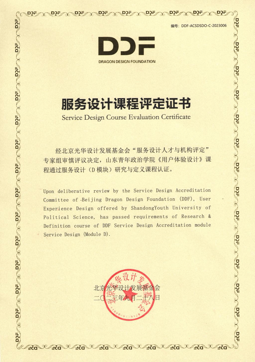 近日,北京光华设计发展基金会公布了“DDF中国服务设计人才与机构评定体系”第三轮课程评定结果。设计艺术学院产品设计专业教师荆鹏飞、宋瑞波、杨雪负责的《用户体验设计》课程成功获得认定,为山东省高校课程建设队列的首次入选课程。