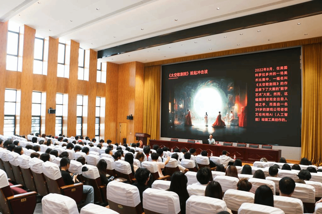 张博走进“博雅讲堂”,向美术与艺术设计学院的师生们作 “人工智能对设计教育的影响”专题讲座。讲座中,他从人工智能设计工具简介、人工智能在不同设计领域的应用、人工智能对设计教育的影响和人工智能对设计教育的挑战与对策等5个方面进行了深入讲解,并通过实际案例现场展示了人工智能技术对各个行业领域的影响。