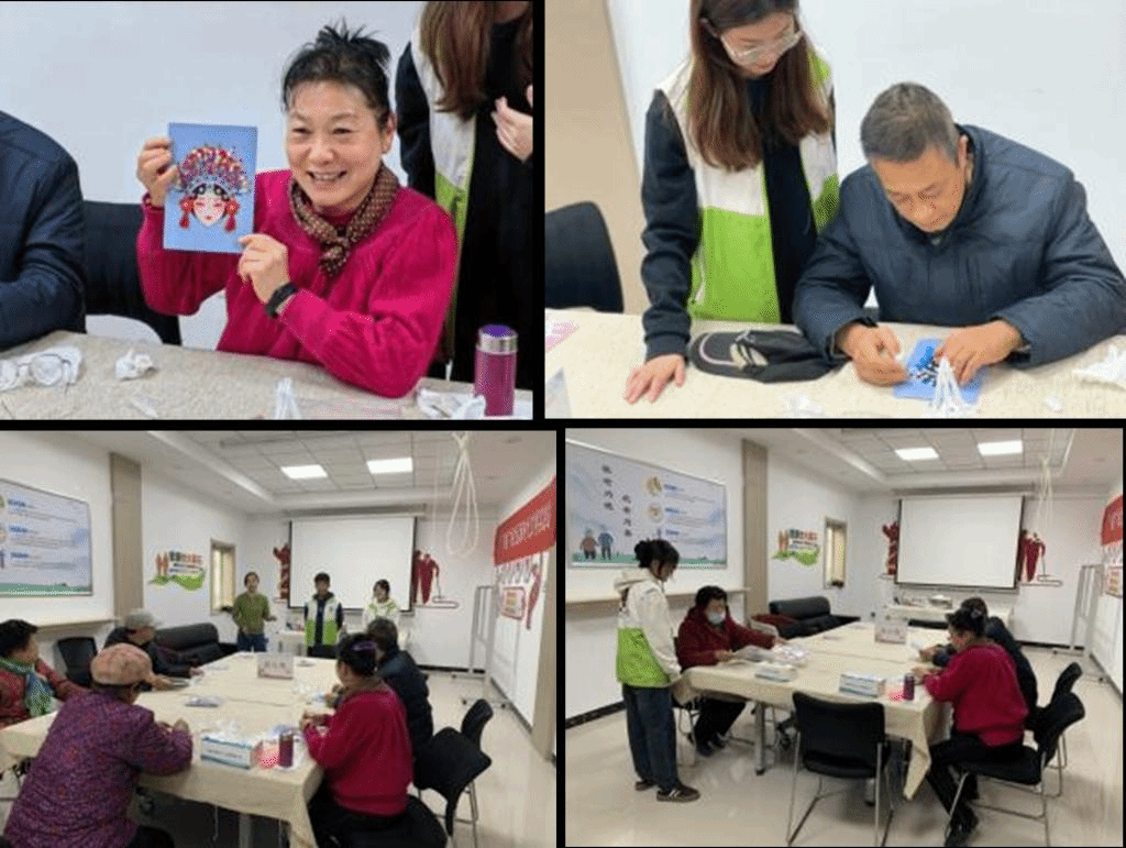 活动中,青年艺术帮志愿者们用通俗易懂的语言向居民讲解了脸谱的分类、特点、颜色以及每种颜色背后所代表的人物独一无二的性格以及不同的脸谱在京剧中代表的人物特点等基本知识。根据老人们对于京剧人物的喜好特点,志愿者们逐一细心指导他们绘画京剧人物,帮助他们直观感受京剧艺术的魅力。
