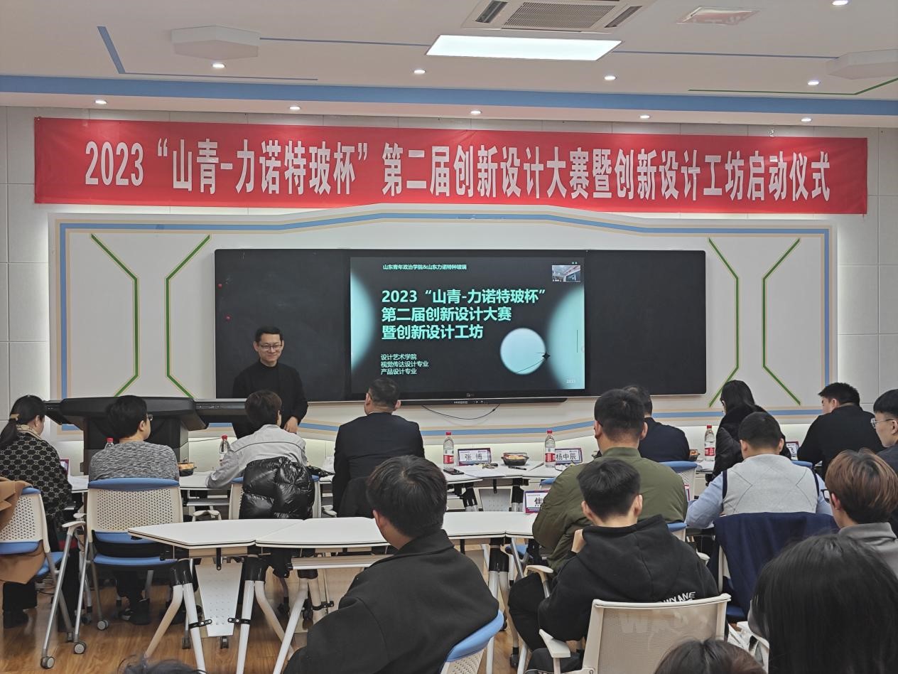 11月21日,2023“山青-力诺特玻杯”第二届创新设计大赛暨创新设计工坊启动仪式在笃行楼教师工作坊顺利进行。山东力诺特种玻璃服份有限公司董事长杨中辰、副总经理宋来、市场部总监姬婧、品牌文化中心总监吴梦娜、产品设计开发部总监朱佃亮及我校设计艺术学院院长张博、副院长徐彩、办公室主任荆鹏飞、视觉传达设计教研室主任吴蔷薇、产品设计教研室主任杨雪、副主任于程杨及教师代表共同出席仪式,仪式由设计艺术学院副院长徐彩主持。