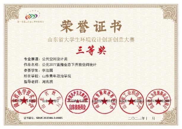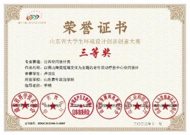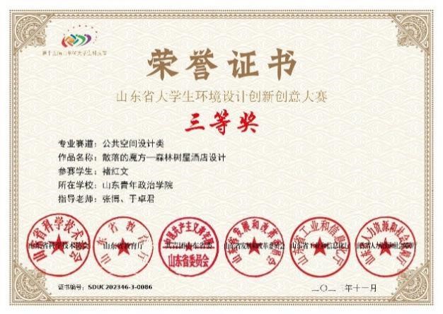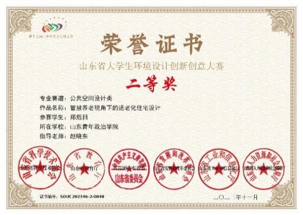 近日,由山东省科学技术协会、山东省教育厅、共青团山东省委等单位联合主办的第十五届山东省大学生科技节-第四届山东省大学生环境设计大赛奖名单揭晓。我校设计艺术学院学生作品在大赛中荣获二等奖三项、三等奖三项。