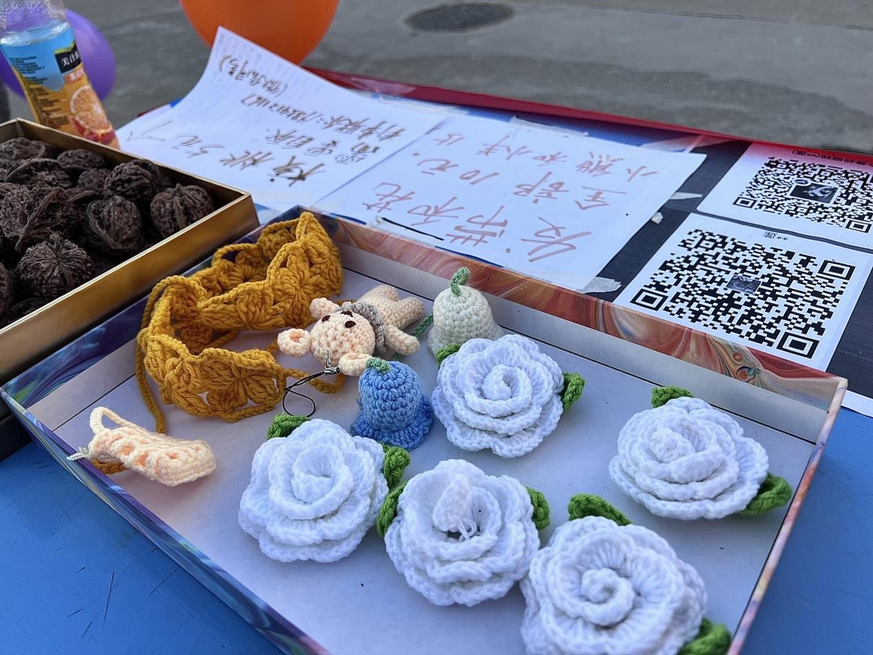 活动期间,学生会精心设置互动、体验、售卖环节,从精致的手作饰品到有趣的DIY,从潮酷的盲盒到可爱的毛绒玩具,同学们用毛线编织美丽花束,用巧手编造瑰丽世界,给予活动参与者沉浸式体验,活动过程吸引了众多师生围观,营造了活跃的校园文化氛围。