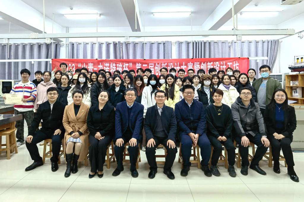 12月7日,2023“山青力诺特玻杯”第二届创新设计大赛暨创新设计工坊作品汇报在躬行楼435教室成功举行。山东力诺特种玻璃股份有限公司董事长杨中辰、营销总经理刘永昌、品牌文化中心总监吴梦娜、产品新品研发设计部总监朱佃亮,学校党委副书记、院长辛杰,党委委员、副院长张杰、陈龙溪,教务处处长白洁、科研处处长满璐,设计艺术学院领导班子,各教研室主任、科室负责人共同参加活动。活动由设计艺术学院院长张博主持。