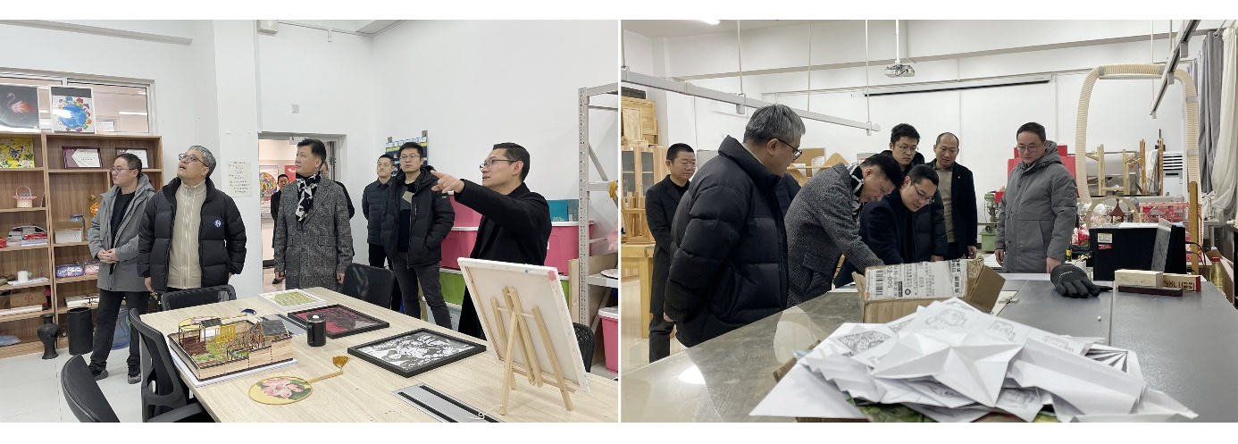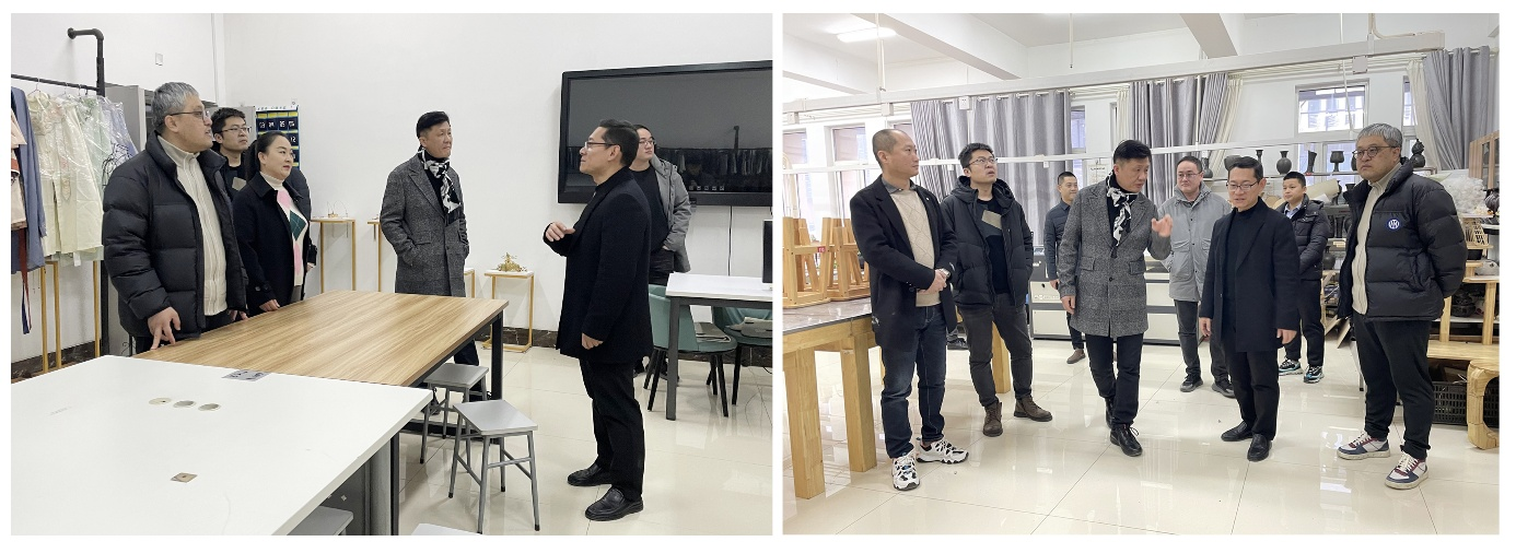 考察团一行首先来到了设计艺术学院实验教学中心,在张博院长带领下大家先后参观了学院的画室、工作室以及专业实验室,了解了学院在实践教学方面的教学理念、校企合作的相关成果以及学院进行社会服务等方面的情况。