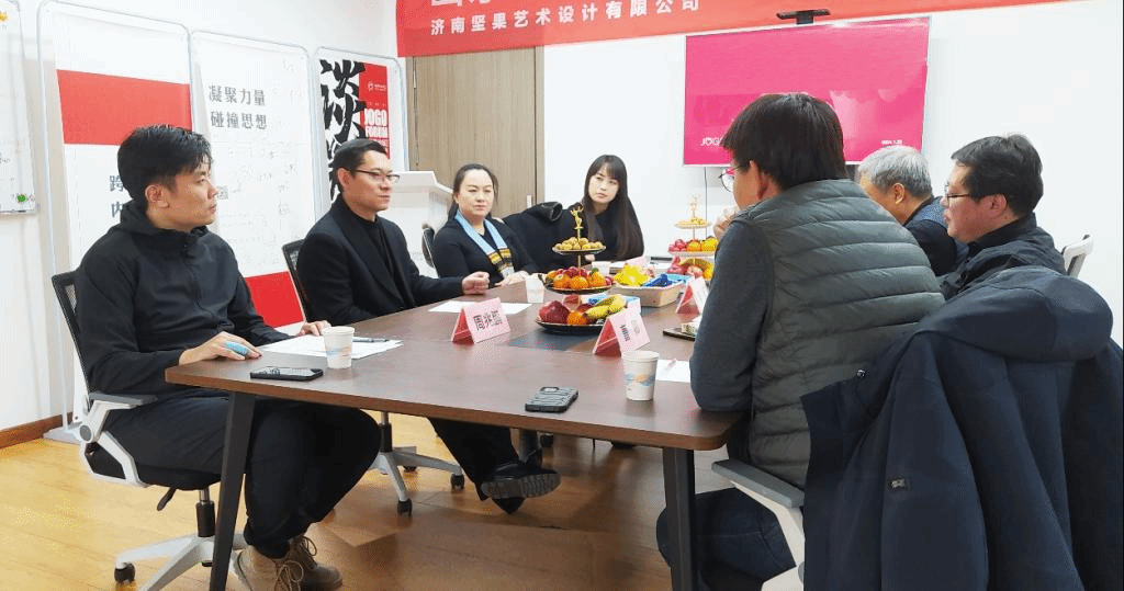 济南坚果艺术设计有限公司创办于2015年,多年来专注于展示策划、展示全案设计、项目施工与落地等展示类全产业链服务。座谈中,李坚总经理首先对学院领导的来访表示了热烈欢迎,并详细介绍了目前展示设计市场的前沿动态以及当下设计人才需求等情况。他表示,山东青年政治学院设计艺术学院近年来秉承开放的办学理念,在应用型人才培养方面取得了突出的成绩。最近结合人工智能技术服务于教学体系的前沿做法,在学界和业界也产生了很强的影响力。希望校企双方能够以实习基地建设为契机,共同研创双方互惠的产学研合作模式。