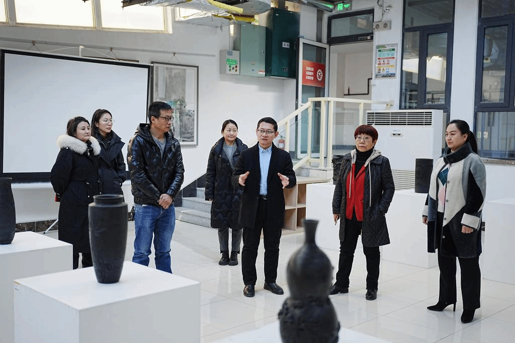 1月24日下午,山东省家具协会会长牛广霞、副秘书长陈娟、会员部副主任吕磊,中国林产协会木艺工坊专业委员会副会长王景军,山东驴木匠教育咨询有限公司刘莉一行莅临设计艺术学院考察交流。设计艺术学院院长张博、党委书记薛卿、副院长徐彩,产品设计专业教研室主任杨雪、副主任于程杨及部分专业教师参加座谈并陪同参观。
