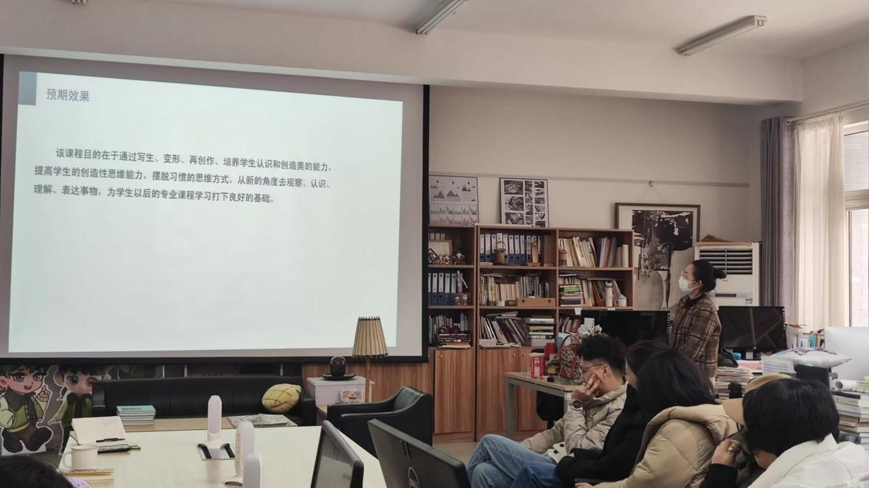 工作部署环节,吴蔷薇首先回顾了2023年视觉传达设计专业在科研、教研、教学成果、学生参赛等方面取得的成绩,同时也指出了上一年工作中存在的不足,并勉励大家查缺补漏,再接再厉。随后,向大家传达了本学期聚焦教学质量提升的工作重点,指出教学质量的提升主要通过课程组成员的讨论和磨课完成,鼓励课程组教师之间要多讨论,深入讨论,课件要常备常新。最后就新课程标准的撰写做了工作安排,强调新课程标准要突出应用性、连贯性和创新性。