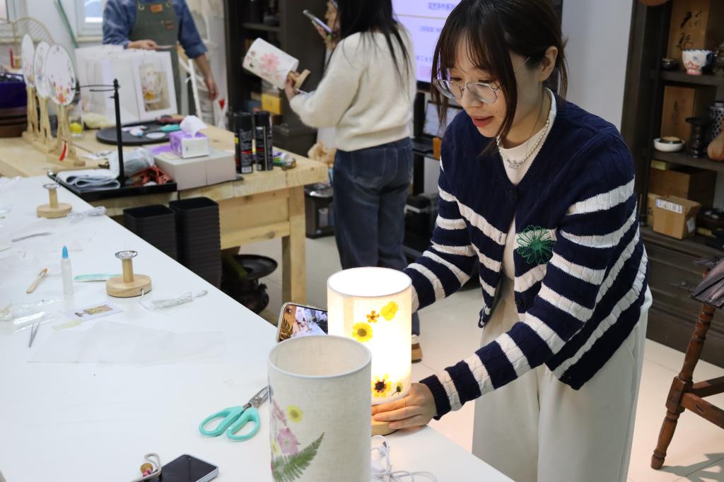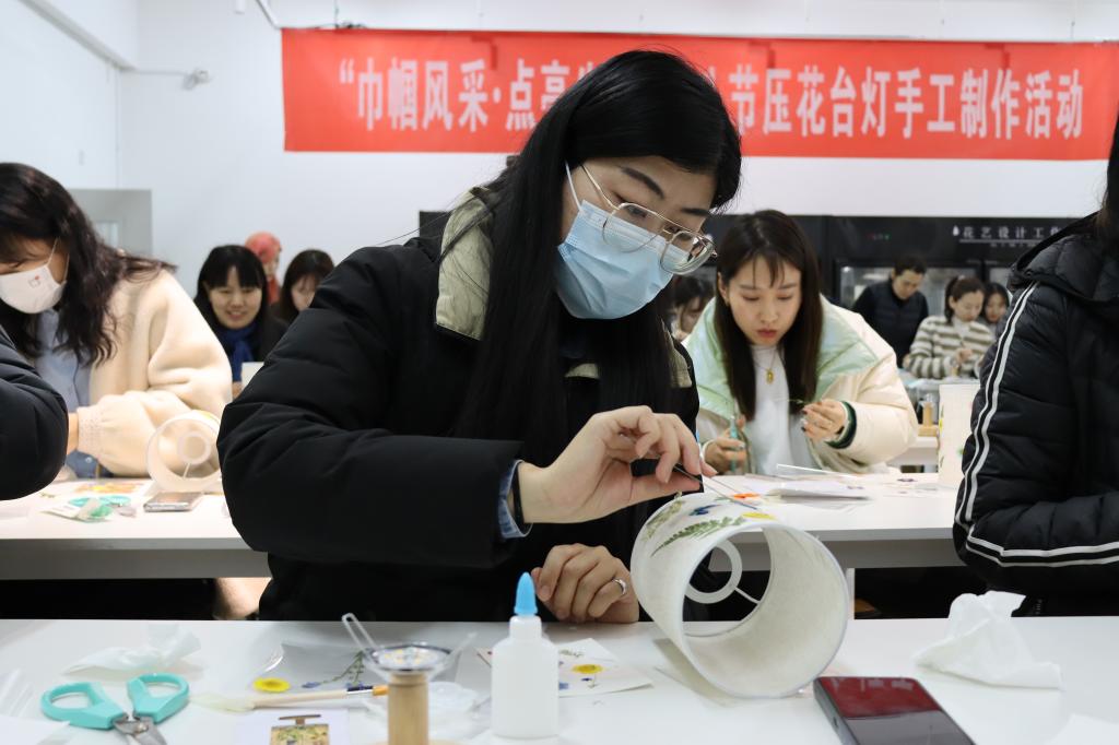 3月6日下午,在第114个“三八”国际妇女节来临之际,由校工会主办设计艺术学院承办的“巾帼风采 点亮生活”压花台灯手工制作活动,在躬行楼436手工艺制作教室举行。
