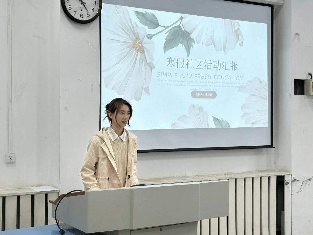 活动成员代表围绕制定学习计划、开展学科专业调研、精读名著典籍、参与社会实践、学习劳动技能、培养健康生活习惯等主题进行分享,通过图片、PPT、视频等丰富多彩的形式生动讲述了自己寒假期间的学习实践经历。其中“小我融入大我,感知时代脉搏”活动成员魏博涵分享了赴潍坊市昌邑市龙池镇红色革命基地开展实践活动的经历,她表示,将继续传承弘扬革命文化,推广红色革命精神。“致敬文学经典,汲取精神伟力”活动成员李雪分享了寒假期间的读书感悟,她为大家讲述了与书结缘的点滴,让大家感受到了书籍的力量和美好。“保持积极心态,关爱身心健康”活动成员刘艺萱分享了寒假期间自律打卡的过程,她表示,自律打卡使她克服了惰性,养成了良好的生活习惯,她将继续坚持下去,享受运动带来的快乐与健康。