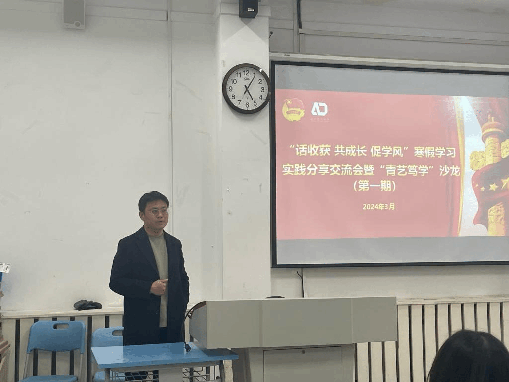 3月21日,设计艺术学院于双馨楼第一画室举办“话收获 共成长 促学风”寒假学习实践分享交流会暨第一期“青艺笃学”沙龙活动。设计艺术学院党委副书记徐健,团总支书记李耀辉、全体辅导员、“六个一”寒假学习实践活动代表及2023级部分学生参与本次会议。