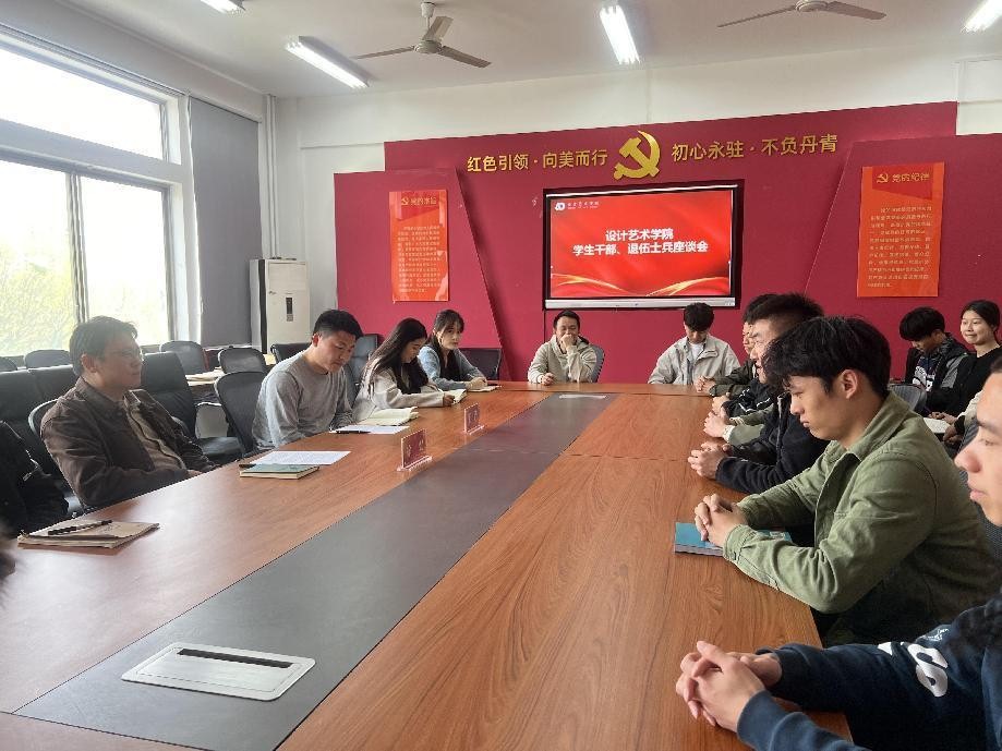 为加强退役军人大学生的教育管理工作,切实掌握退伍军人大学生思想动态,促进学生健康成长,4月2日,设计艺术学院于双馨楼301会议室召开退伍军人大学生座谈会。设计艺术学院党委副书记徐健、辅导员王浩与学院退役军人大学生代表进行了深入座谈。
