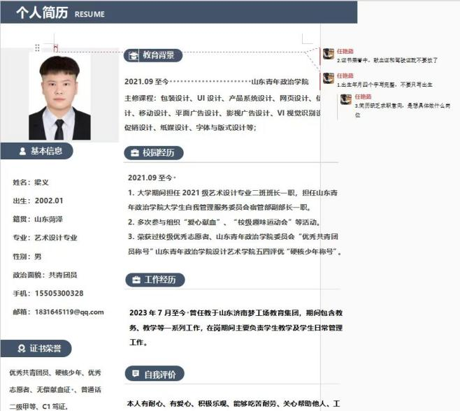 4月1日-4月3日,为提升学生就业技能,帮助毕业生完善个人简历,提高求职成功率,设计艺术学院面向2024届毕业生提供简历“诊断”服务。活动中,毕业班辅导员“一对一”指导毕业生,秉持严谨、稳重、理性的态度为学生提供全方位、个性化的简历诊断与优化建议,指出学生简历中存在的问题,就简历排版、内容表述等容易缺乏吸引力的方面给出了具体建议。