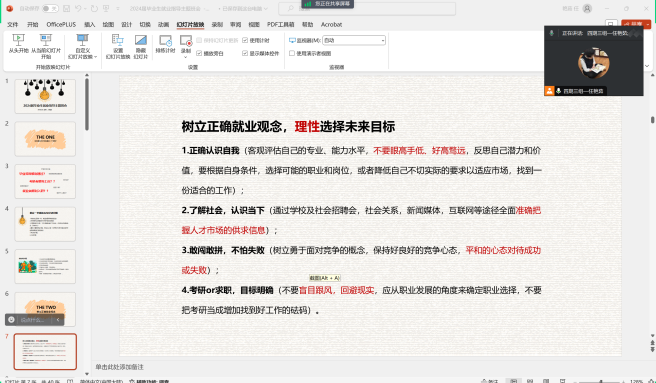 3月10日-4月12日,设计艺术学院结合实际情况,聚焦毕业生切实关切的问题,通过问卷调查、面对面谈心和主题班会等方式开展就业工作思想状况调研工作,了解毕业生的就业意向和困难。辅导员、班主任围绕如何树立正确就业观念、毕业生常见就业疑问、十大类就业形式、招聘信息获取渠道、面试技巧等方面开展就业指导主题班会,帮助毕业生明确就业方向,准确把握就业形式。学院副书记徐健、辅导员王浩组织毕业生开展座谈交流会,围绕个人职业规划、就业指导服务等问题展开探讨、提出建议,为学院后续精准化帮扶引导奠定基础。