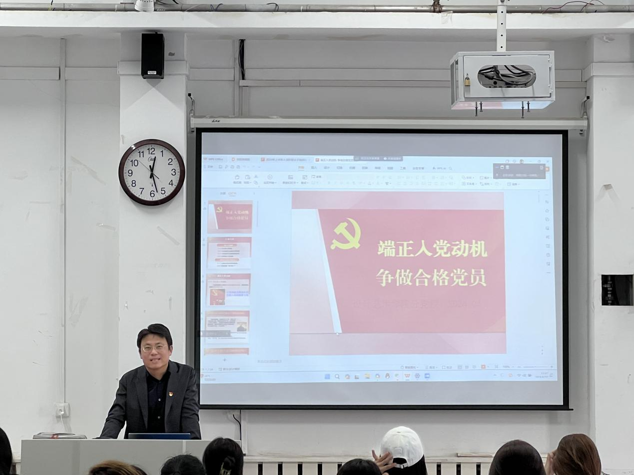 为深入学习贯彻习近平新时代中国特色社会主义思想和党的二十大精神,提高新时代青年党性修养和宗旨意识,进一步加强入党积极分子的教育和培养,严把党员发展的“入口关”和“质量关”。根据《设计艺术学院分党校2024年培训计划》安排,4月22日,设计艺术学院分党校在双馨楼320教室举办2024年上半年入党积极分子培训班开班仪式。设计艺术学院党委副书记、分党校副校长徐健,学生党支部书记以及88名入党积极分子参加本次培训班开班仪式。
