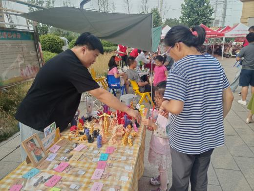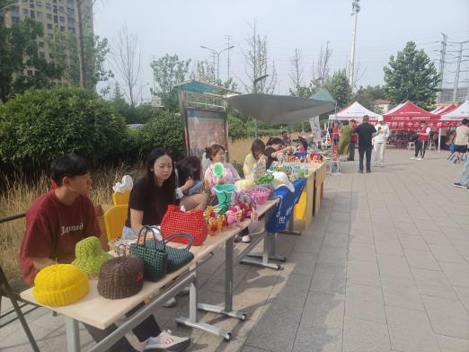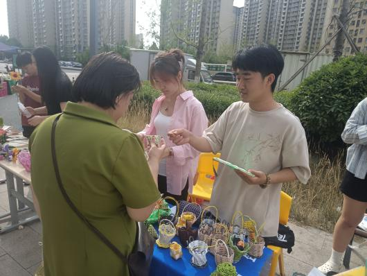青年志愿者们积极向社区居民介绍了临沭柳编、掐丝珐琅、剪纸、绒花等我国非物质文化遗产的历史发展和技艺文化,并精心创作了系列非遗作品供居民深入了解感受,摊位现场吸引了大量居民驻足观看。青年志愿者们现场展示了非遗文创的制作过程,手把手传授编织、剪纸等技艺,带居民们在亲身体验中领略传统文化的魅力。