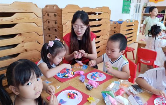 为了帮助孩子们直观生动的体会爱党爱国红心,宣讲团的志愿者们利用图片和视频等形式向幼儿宣传关于建党节的由来及其相关知识,让幼儿了解七月一日是中国共产党的生日,知道没有共产党就没有新中国,初步培养了幼儿热爱中国共产党的情感。随后,志愿者耐心指导孩子们用黏土亲手制作了一朵朵向日葵、一个个生日蛋糕等红色文创作品,共同庆祝中国共产党成立103周年,与孩子们以美术作品向党深情告白,现场气氛欢快热闹。