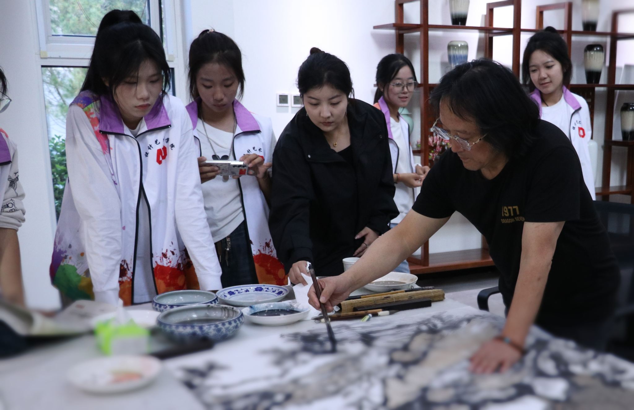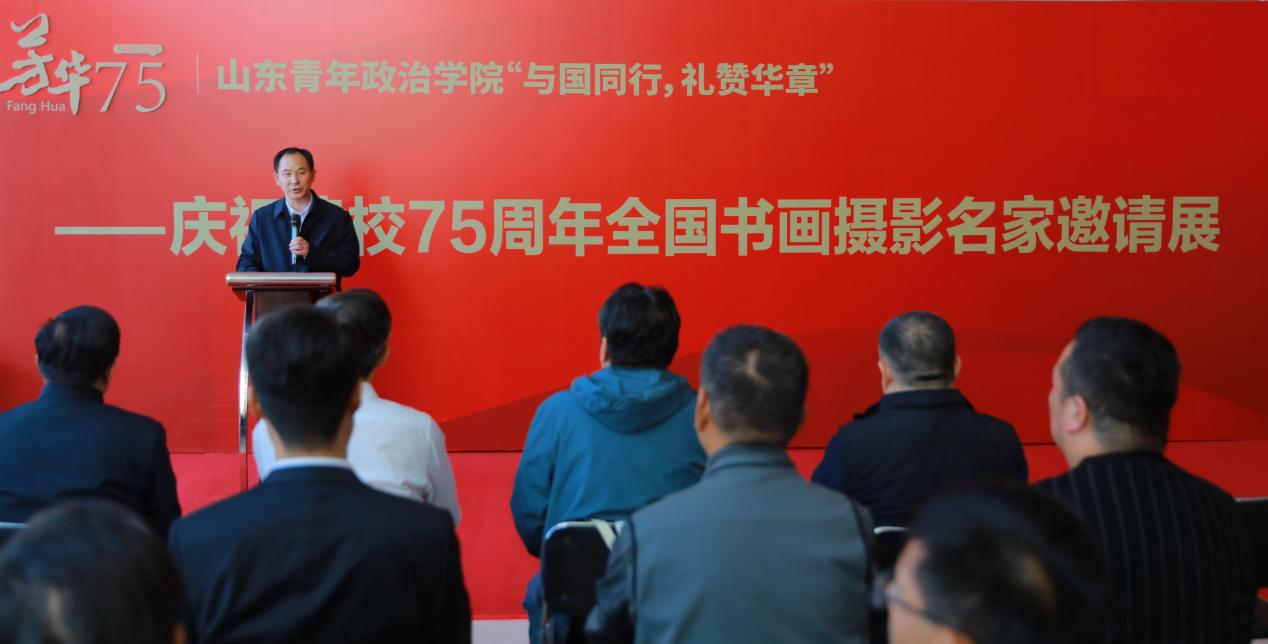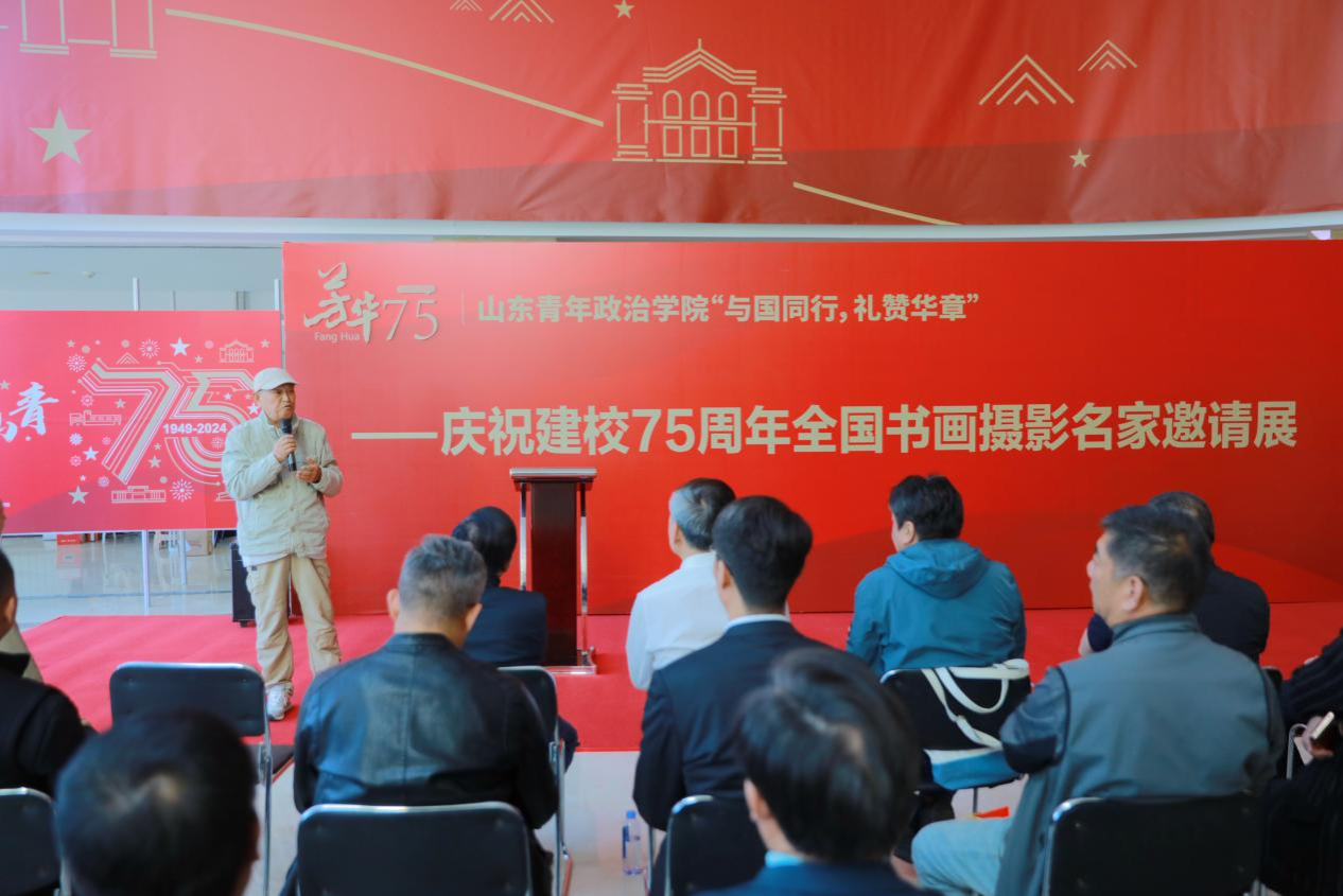 在新中国成立75周年之际,为深入学习贯彻党的二十届三中全会精神和习近平文化思想。10月11日,设计艺术学院举办“与国同行,礼赞华章”——全国书画摄影名家邀请展。中国书法家协会理事、山东省文联副主席、山东省书法家协会主席王瑞,中国美协理事、山东省文联副主席、山东省美协原副主席杨枫等近20位书画名家齐聚山青。艺术家们以书言志、以画寄情,紧扣“新中国成立75周年”这一主题,现场挥毫泼墨、畅叙心怀,共同打造了一堂主题鲜明、内涵深刻的“艺术党课”。