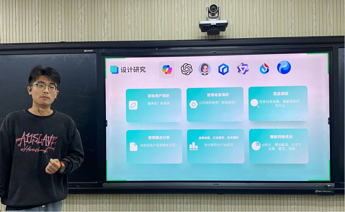 随后,结合人工智能领域在专业实践中的应用,专业邀请优秀校友、企业设计师李承洋为师生带来《人工智能、设计与生活》的专题分享,结合工业设计的设计标准与规范,设计研究与技术应用,专利查询,设计报告与文献阅读,设计创新、就业与创业,开展了生动的专题分享与交流。