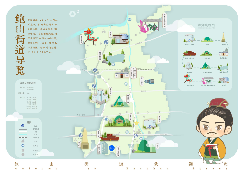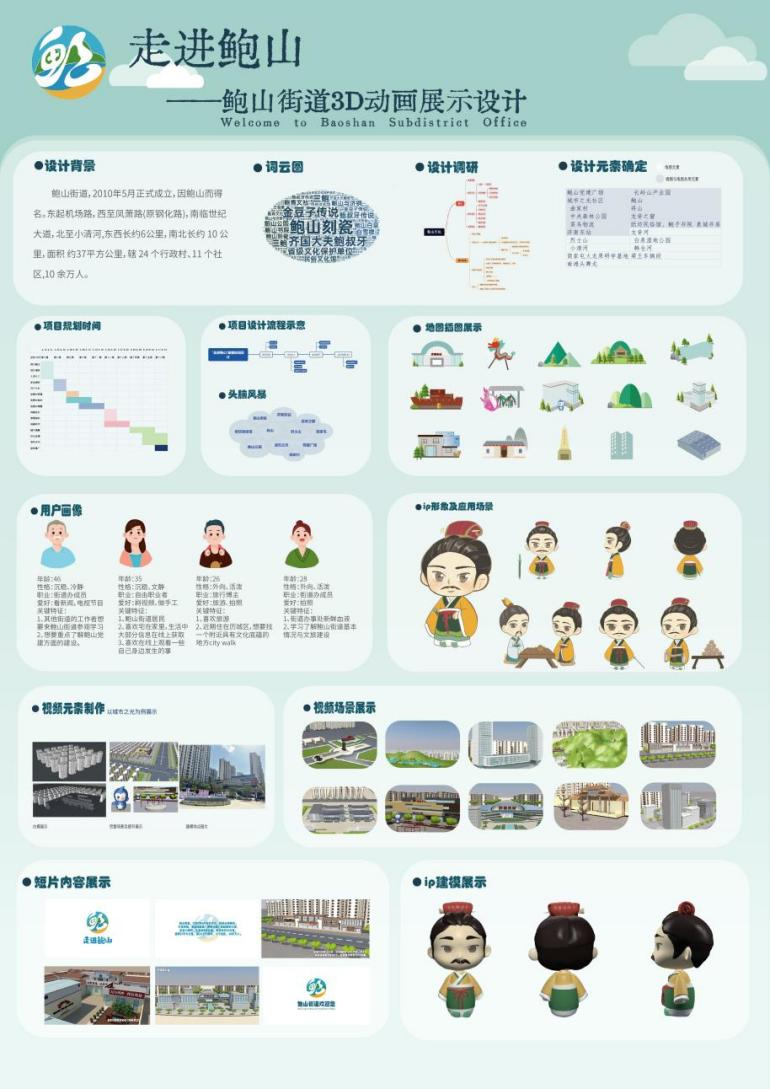 为全方位展示鲍山街道文旅特色,5月至7月,数媒工作室课程团队在鲍山街道办的支持下,多次深入鲍山社区、村镇展开广泛调研,根据考察成果,最终完成了鲍山街道IP形象、文旅地图及鲍山文化空间3D动画短片等视觉宣传作品,并于9月正式投入使用。