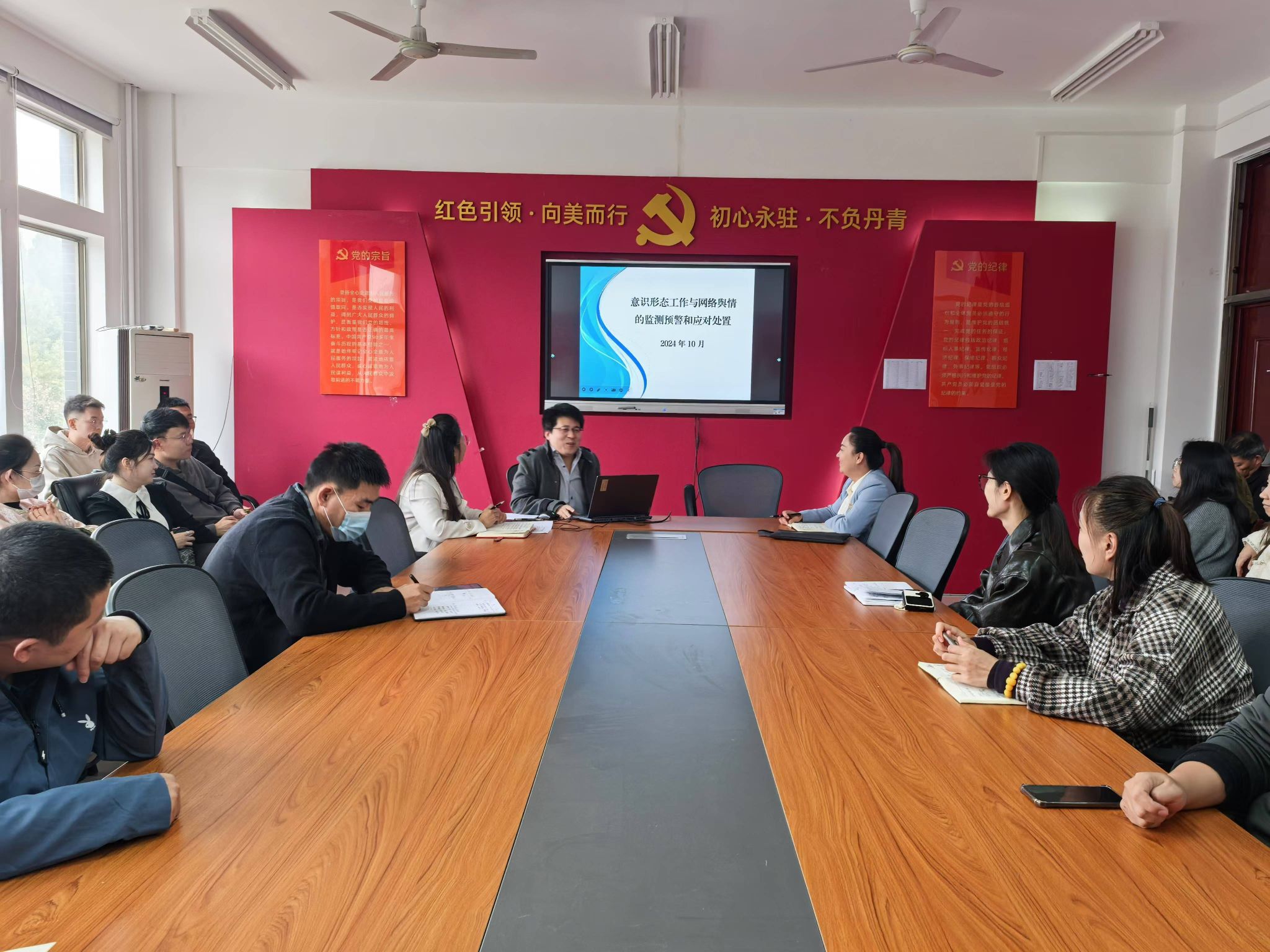 会上,崔法光以《网络舆情的监测预警和应对处置》为题,结合丰富的工作经验,运用鲜活典型的现实案例,深度阐述了网络舆情的概念与基本特征,系统剖析了身边存在的网络意识形态风险隐患,针对性讲解了网络舆情突发事件应急处置策略。