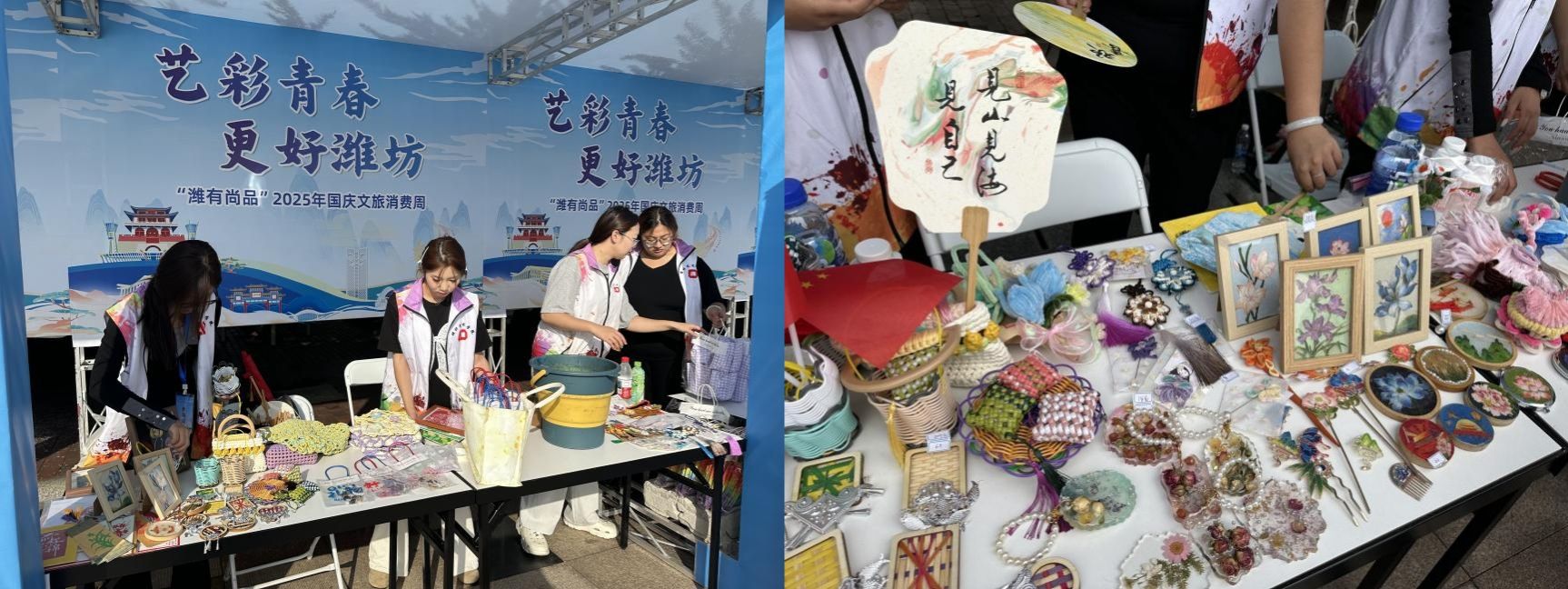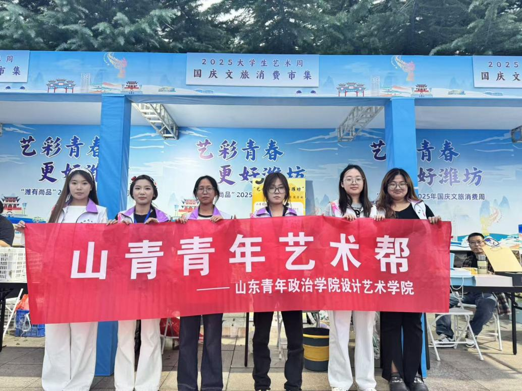 10月1日—10月2日,设计艺术学院“山青青年艺术帮”实践团队受邀亮相“艺彩青春 更好潍坊”2025大学生艺术周,将学生自主创作的多项非遗文创作品搬进展区,并带来趣味十足的DIY非遗互动体验,以青春力量助力非遗文化传承,成为活动现场一大亮点。