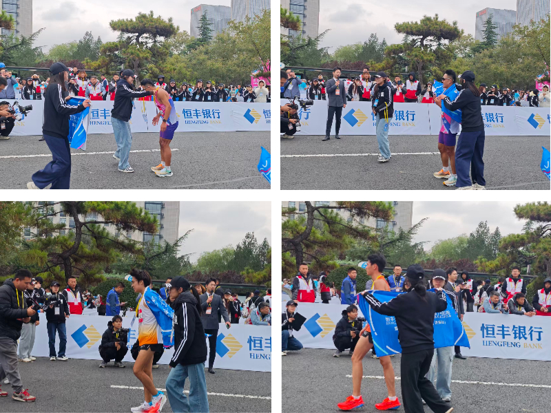 比赛前期,志愿者们系统学习赛事流程、岗位职责、应急处理及礼仪规范等内容,明确了补给发放、路线指引、秩序维护等不同岗位的工作要求,为服务顺利开展做好充分准备。比赛当天,志愿者凌晨3点20分换好统一服装乘坐大巴到达比赛现场,迅速进入工作状态。他们在终点计时区全神贯注完成选手冲线时间的精准记录,高效开展名次牌分发工作,同时做好现场人流的疏导工作。设艺学子以昂扬的青春姿态为赛事提供细致入微的赛事保障,在志愿服务与专业实践中彰显靓丽的青春底色。