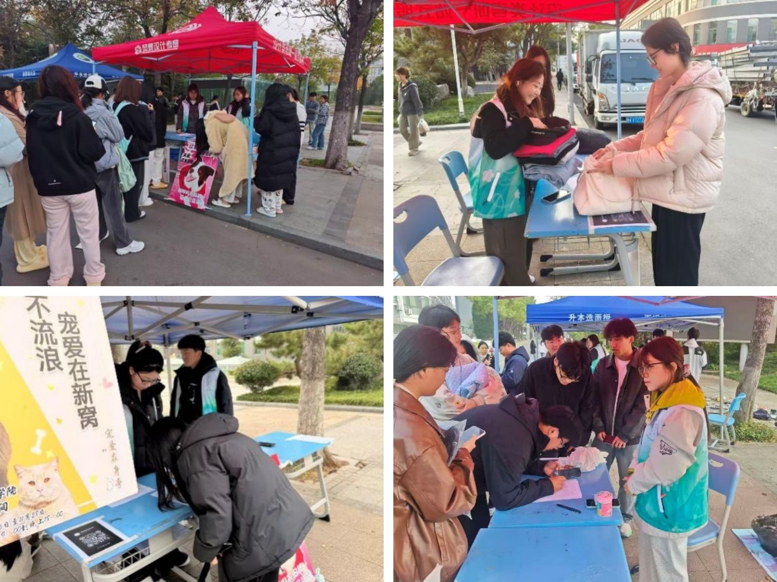 10月25日-26日,设计艺术学院携手济南慈悲护生园于南北苑餐厅之间面向全校学生开展“让爱不流浪,宠爱在身旁”旧衣旧被爱心捐赠活动,这已经是两个单位连续合作的第三年,活动由设计艺术学院山青青年艺术帮组织,有近六百名学生参与,捐赠衣被七百余件。