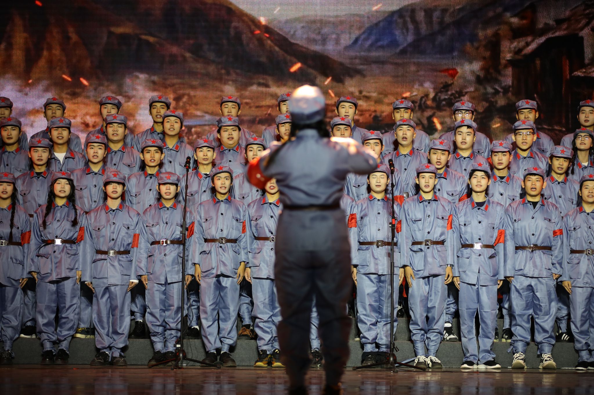《游击队歌》的欢快旋律让现场氛围瞬间变得激昂起来。歌曲以富于弹性的节奏、轻快活泼的曲调,生动刻画了游击队员乐观机智、顽强战斗的英雄形象。师生们精神饱满,歌声铿锵有力,完美诠释出歌曲中蕴含的革命乐观主义精神与战斗豪情。整齐划一的口型、协调默契的配合、饱含激情的演唱,将整首歌曲的感染力推向顶峰,赢得了现场评委与观众的热烈掌声。