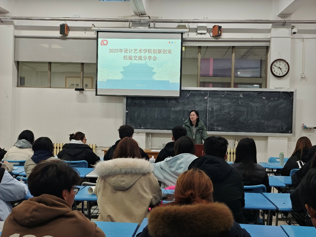为深化创新创业教育,激发学生创新思维与实践能力,12月5日,设计艺术学院“青苗计划”第四讲——创新创业大赛经验分享会在双馨楼317开讲。本次专题分享会邀请赛事优秀获奖学生魏雨芹、史昊洋现场分享,由辅导员岳雨主持,全体2025级学生团干部参加学习。