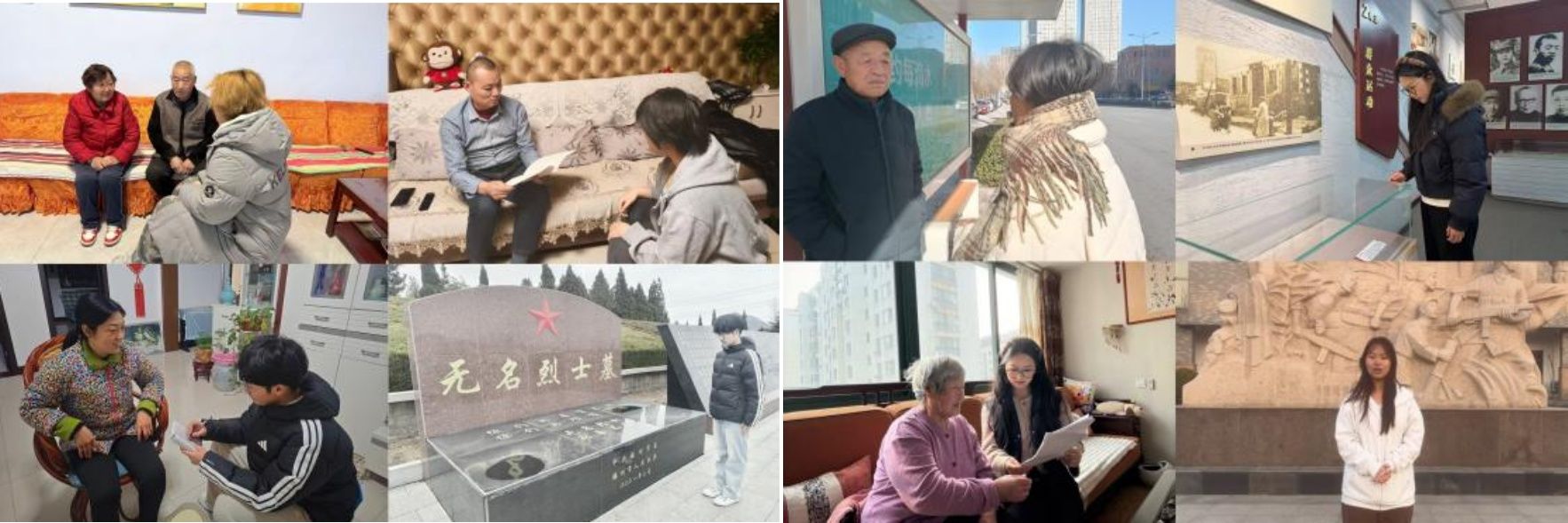 “身边的抗战记忆”方向团队先后赴日照、烟台、菏泽、济南等八地同步开展寒假研学实践活动。团队成员立足青年视角,聚焦本土抗战故事,为让红色故事触及人心,团队成员以“抗战+农耕”为创作核心,精心制作系列红色短视频。成员们结合调研所得的“活态史料”,分别打造“抗战岁月”与“农耕里的抗战记忆”两大部分,以实地走访、调研访谈、创意创作等多种形式,解锁身边的抗战记忆,让红色历史在新时代焕发出新的生机。