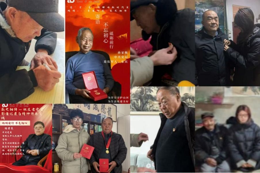 “薪火相传”方向团队奔赴山东济宁、日照、青岛、聊城、临沂、烟台,河南商丘、信阳各地,开展“薪火相传”社区老党员影像记录与精神传承实践活动。实践活动聚焦党龄较长的老党员、老一辈退伍军人及基层党员代表,以多元形式挖掘红色故事、传承红色精神。实践团成员协助老党员佩戴党员徽章,用镜头捕捉老党员们历经岁月仍熠熠生辉的精神风貌,拍摄高质量肖像照,将红色岁月的精神印记永久留存。邀请老党员分享入党初心、奋斗历程与人生感悟,为青年党员留下饱含期许的时代寄语,让红色信仰与奋斗精神在交流中传递。团队成员将老党员肖像照与寄语、信息相结合制作成特色明信片并录制寄语短视频、整理语音素材,通过多维呈现方式,让老党员的红色故事和精神力量走出社区、广泛辐射,让红色教育更具吸引力与感染力。