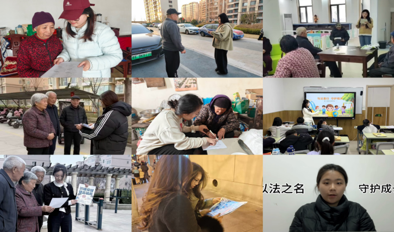“普法进万家,平安伴你行”方向团队9名成员分赴济宁、日照、聊城、德州、潍坊、淄博、东营、邹平、泰安等地,开展寒假普法宣传实践活动,以“普法宣传+法律服务”融合模式,为平安乡村、法治乡村建设注入青春力量。团队成员开展精准化普法宣讲,用方言、通俗口语结合案例,为不同群体讲解专属法律知识,同步录制字幕短视频;组织情景短剧表演,让村民沉浸式理解法律知识;在村内人员密集处发放普法折页,将手册留存村委会;设立法律咨询点,解答简单法律疑问,引导复杂纠纷向专业机构求助,并做好问题记录。