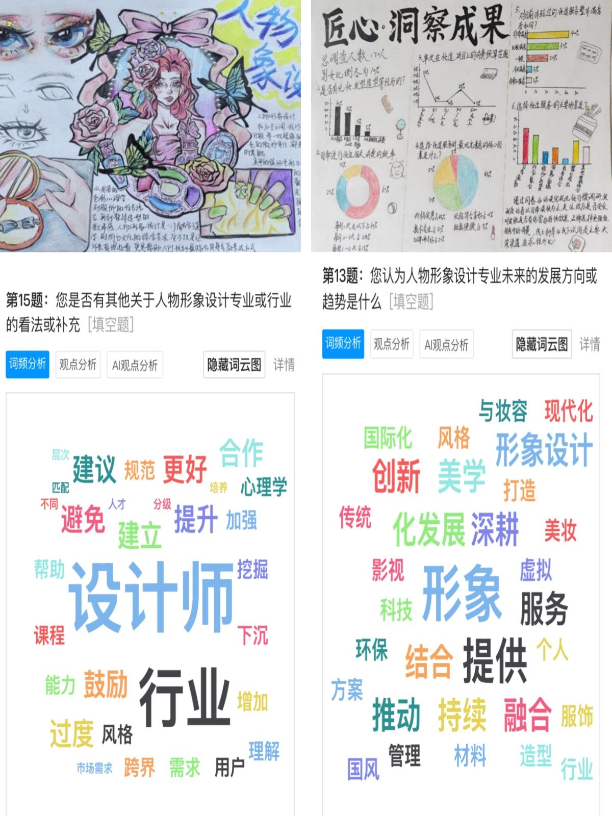 “匠心·洞察调研”妆造行业实践调研中,团队成员围绕专业发展与社会需求,面向不同年龄群体开展问卷调查,深入了解大众审美趋势、消费习惯与行业现存问题。通过对调研数据的系统整理与分析,团队形成完整调研报告,并借助海报、短视频、手抄报等形式对实践成果进行可视化呈现。此次活动以青年视角洞察妆造行业发展趋势,为专业学习与行业创新积累了重要实践依据。
