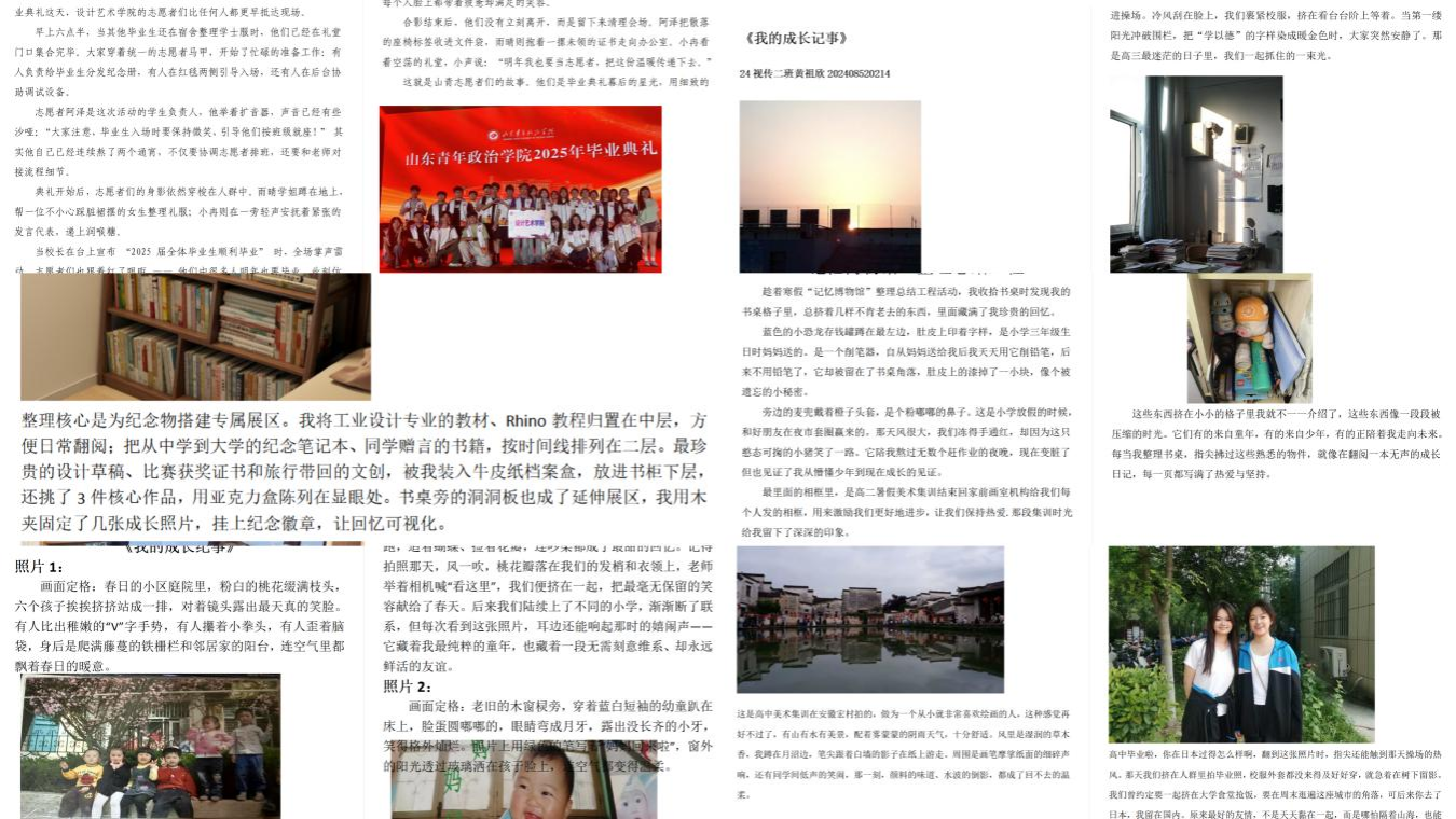 “身心与记忆共融成长计划”活动设置两大板块。“21天身心习惯养成计划”以锤炼意志、提升自律为目标,引导学生养成规律作息、科学饮食等习惯,开展运动及自然观察等实践,学生实现从被动完成到主动热爱生活的转变,全员圆满完成打卡,筑牢新学期身心基础。“记忆博物馆”以唤醒时光印记为主题,学生以镜头、文字为载体,梳理成长轨迹,制作电子版《我的成长记事》,在回顾中感悟成长意义、接纳不完美,更在分享交流中凝聚集体力量,深化对青春、成长与陪伴的理解。