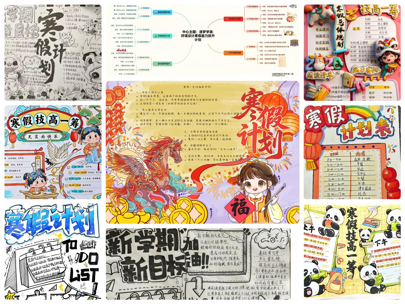 “逐梦学涯,‘计’高一筹——筑梦寒假学习计划创想赛”紧扣专业深耕、技能提升,引导学生规划成长路径、明晰学业目标。学生结合专业特色,以创意绘画、思维导图、海报设计等多种形式,将个人学习目标、计划与奋斗期许融入创作,用专业设计巧思勾勒学涯蓝图。活动吸引学院5个专业14个班级107名学生参与,共征集作品54份。活动不仅有效提升了学生的专业素养,更培养了其自主学习与时间管理能力,显著增强了学生学习的自主性与条理性。