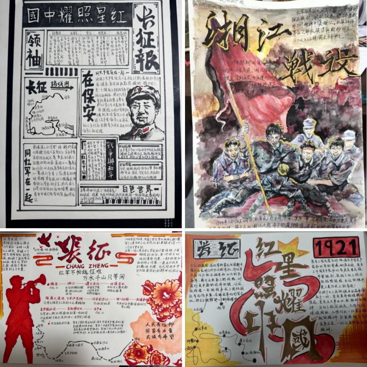结合专业特长,学院开展了“绘忆峥嵘岁月·图展长征精神”手抄报创作与感悟分享活动。同学们在研读长征相关著作的基础上,以A3素描纸为载体,统筹图文布局、色彩搭配与内容编排,创作出一批主题鲜明、形式新颖的手抄报作品。同时,通过撰写学习心得、开展小组交流,同学们进一步将长征精神内化于心、外化于行,使手抄报成为传递信仰、交流思想的生动课堂。