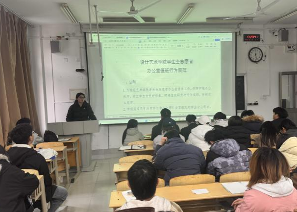 为深入贯彻落实高校学生会改革要求,持续深化学生干部队伍建设,2026年3月18日,设计艺术学院于双馨楼202召开学生会骨干理论学习研讨与业务能力提升培训会,学院辅导员王浩、全体学生会骨干及志愿者参加。